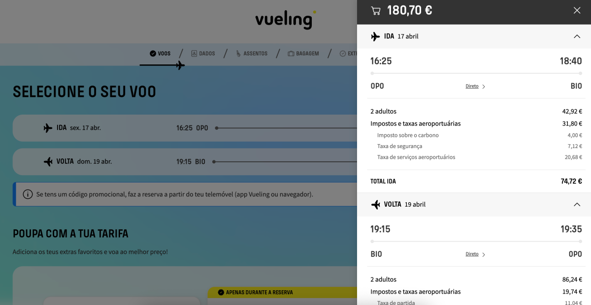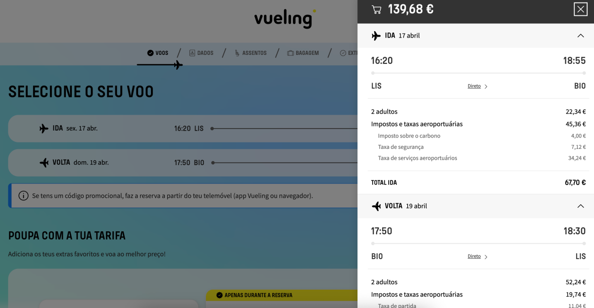 Para ver todas as datas disponíveis basta seguir um dos links abaixo e utilizar a pesquisa no site da Vueling